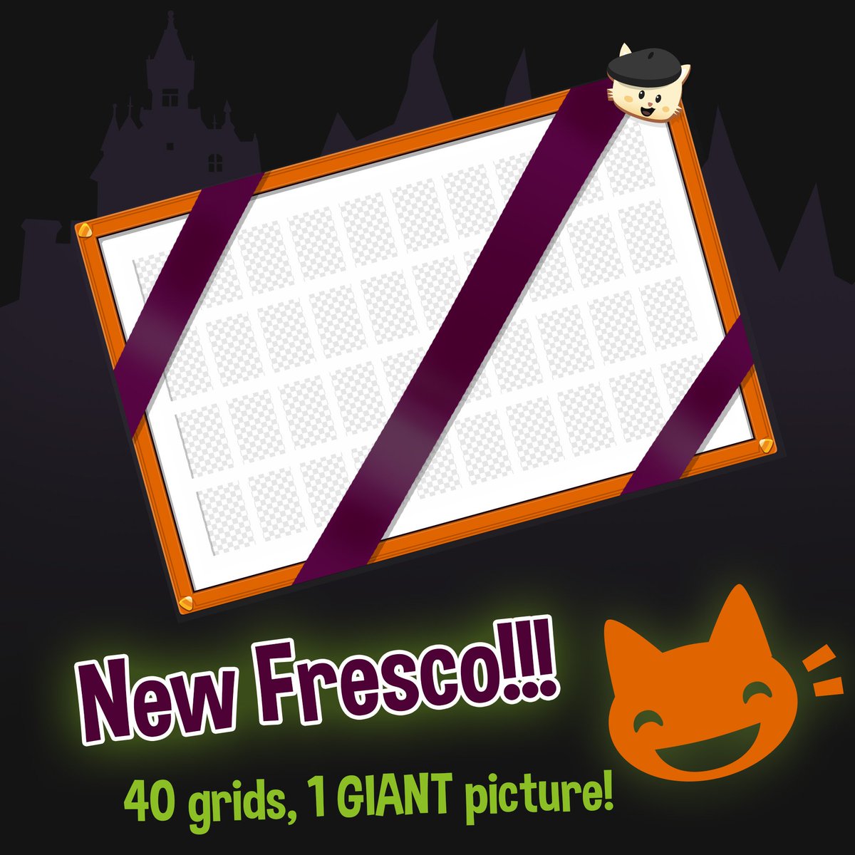 Just in case you missed out the news, there's a brand new fresco available! 40 grids to paint over to discover a giant #pixelart. #havefun #picross #puzzlegame #indiegame #hungrycatpicross