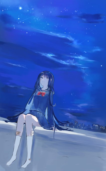 この夜に寄り添うように #イラスト #illustration #創作 #創作イラスト #夜空 #絵