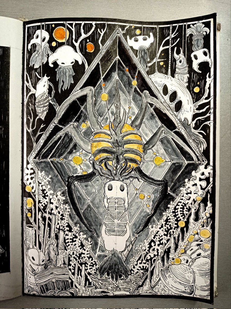 Vessel and Nosk (Hollow Knight) #inktober2021 #inktober2021day3 #Inktober #INK #inktobervessel #drawtober2021 #drawings #illustration #illuminafanart #HollowKnight #hollowknightfanart #ArtistOnTwitter #art