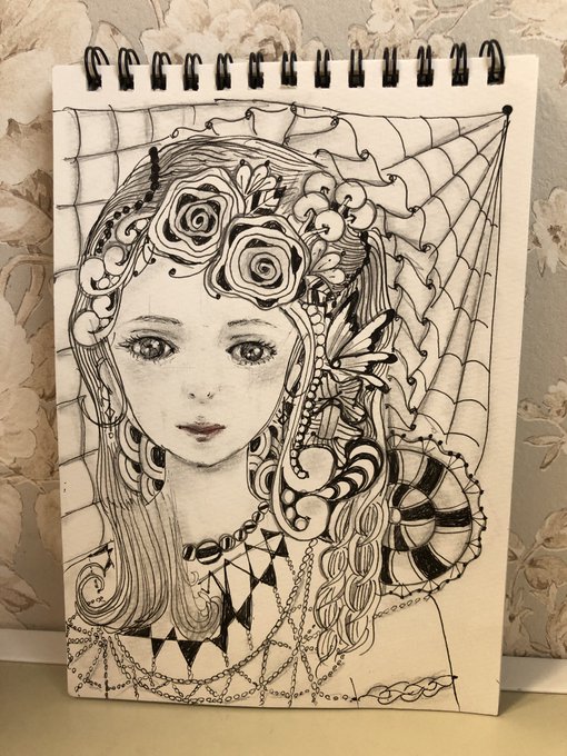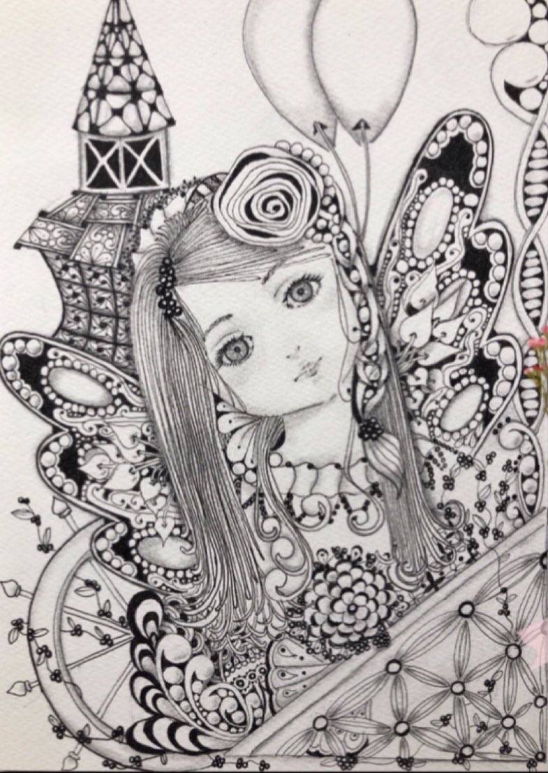 #ゼンタングル #女の子の絵 #イラスト #ペン画 #絵の好きな人と繋がりたい