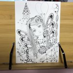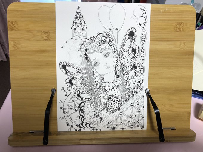 1 24 長時間描いてると首が痛くなるので卓上イーゼル購入。絵はまだ未完成です。 #ゼンタングル #イラスト #ペン画 #女の子の絵 22/06/29 13:41