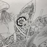1 13 アリスを描こうとしたけど、女の子が人魚っぽいのでこんな感じに、さてどうやって色を塗ろうかな? #ゼンタングル #人魚 #女の子の絵 #イラスト #ペン画 22/07/16 13:45