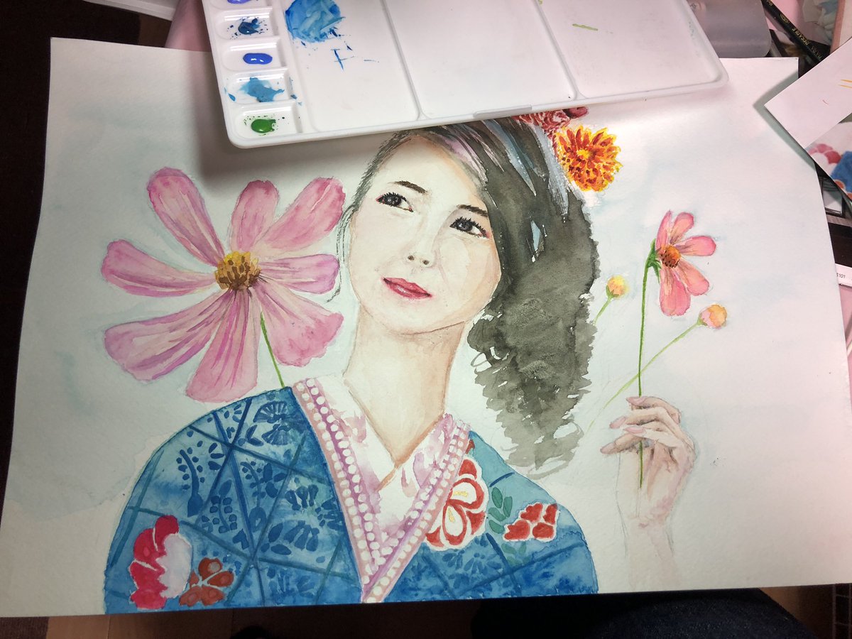 1 20 浜辺美波ちゃん風和風美人 #水彩画 #浜辺美波 #女の子 22/08/04 18:56