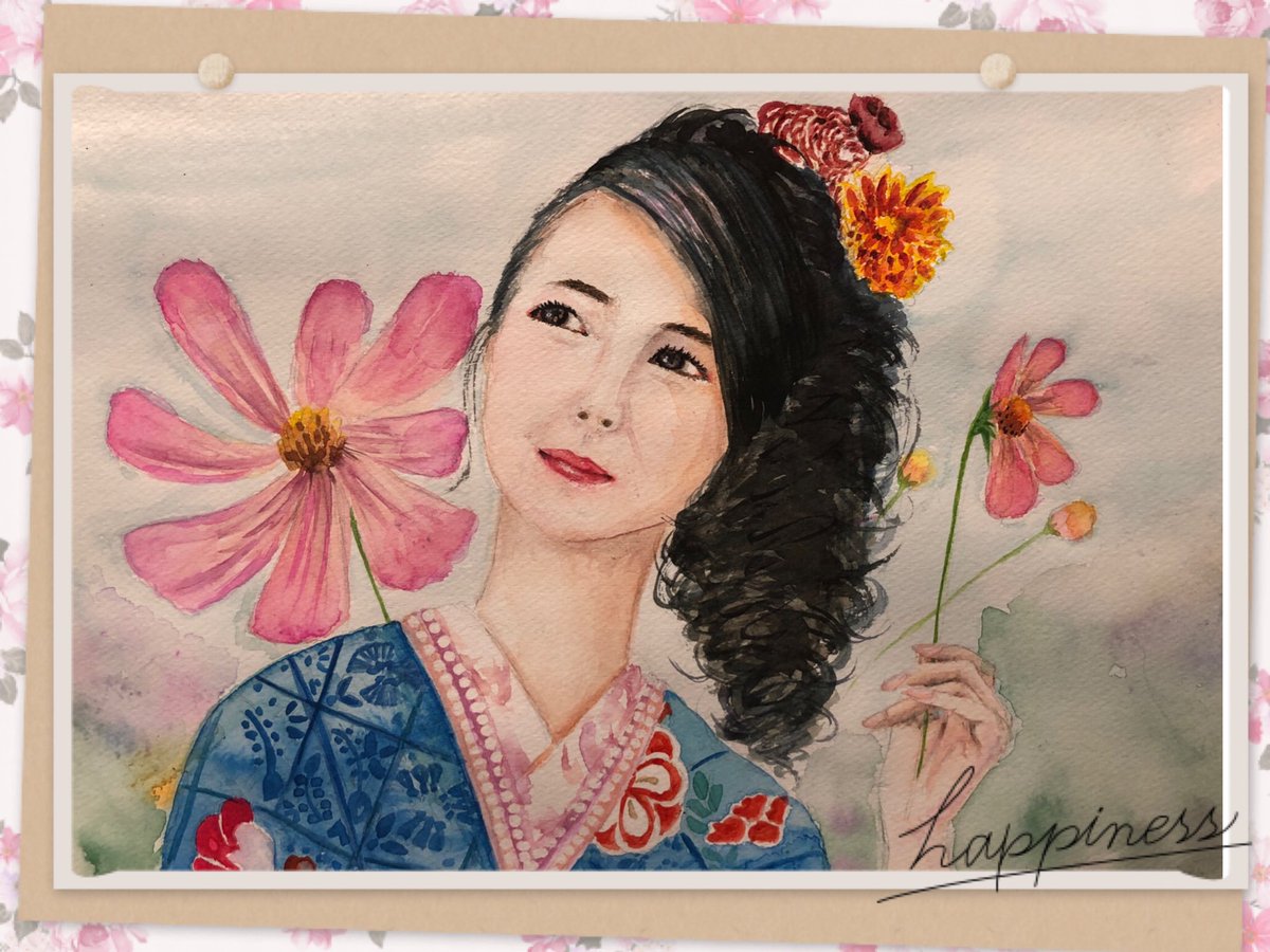 浜辺美波ちゃん風和風美人 #水彩画 #浜辺美波 #女の子