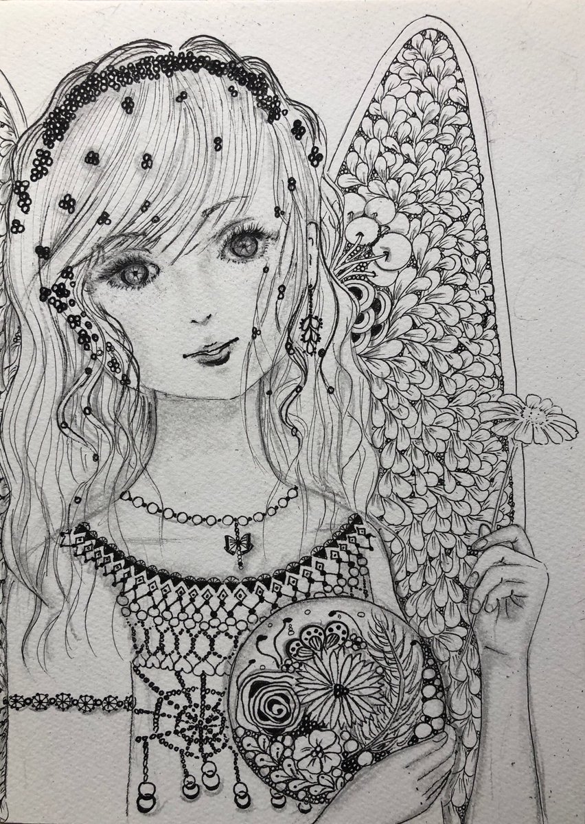1 18 ゼンタングル女の子の絵 「小悪魔フェアリー」 フラックスが止まらなくて羽を全部埋めてしまいました。 #ゼンタングル #女の子の絵 #イラスト #ペン画 22/09/04 19:09