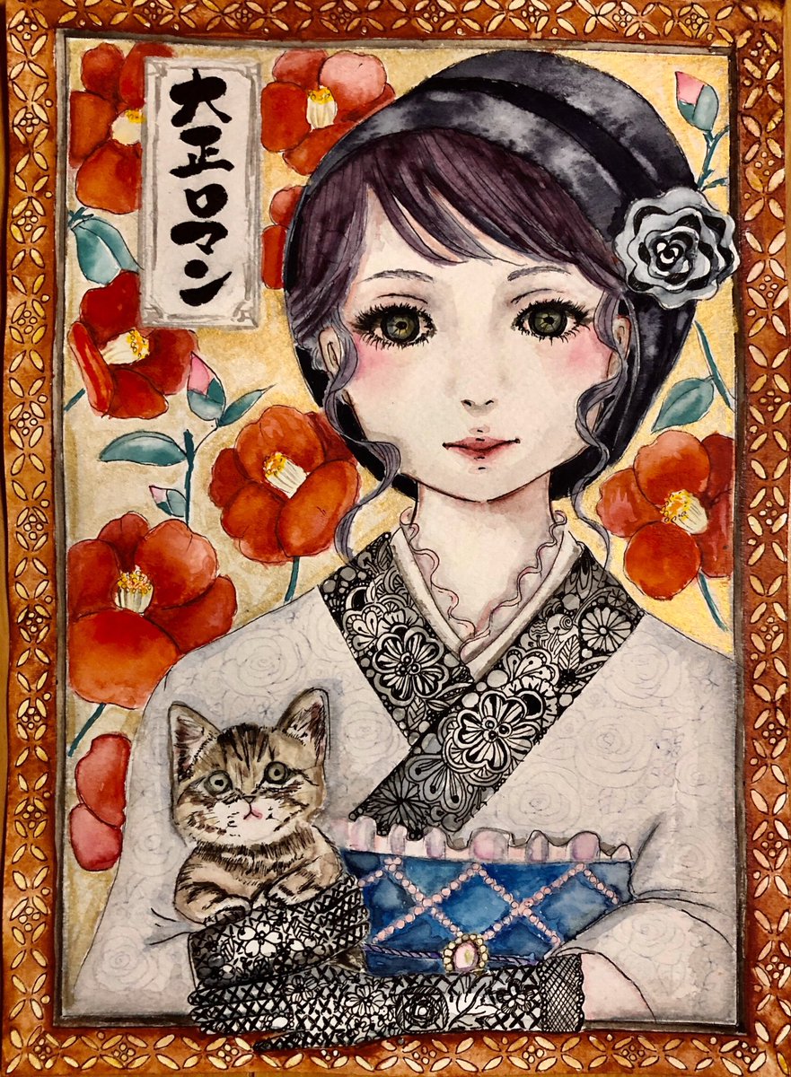 1 11 「大正ロマン」 ~あの頃はよかった~ 浅草の大正ロマン館でこんな感じの着物が着たい❣️ #大正ロマン館 #イラスト #女の子の絵 #レトロ 22/09/11 23:04
