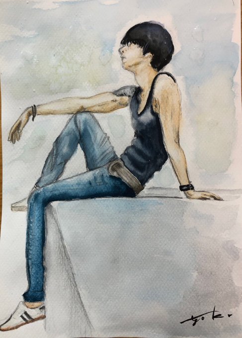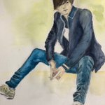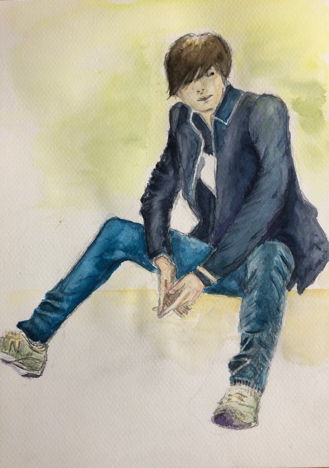 5 29 色を付けたらこんな感じに! #水彩画 #男子イラスト #おし 22/09/26 00:18