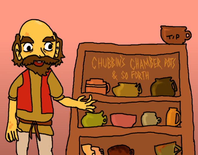 Today on day 5 of Gettin' Arts 2022 the theme is 'Shop'. So i went with the original sponsor of the show Bungaree Chubbins of Chubbins Chamber Pots & So Forth (not to be confused with those fancy pots at Penhaligons Pretty Potties) #Magictavern #Inktober2022 #gettinarts2022