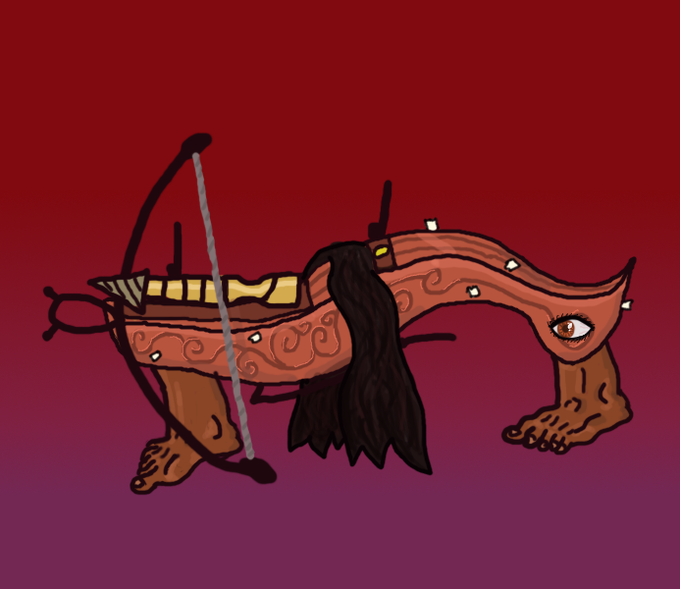 Day 13 of Gettin Arts the theme is Weapons. So what better weapon than a talking Crossbow (former human, currently cursed crossbow) DeMonte. He's recently had some work done to appear... more "human" to mixed results. #Magictavern #Inktober2022 #gettinarts2022