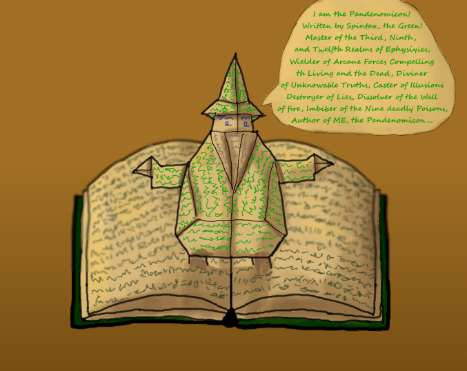Day 6 of Gettin' Arts 2022 is Books. And the book to contain all knowledge (relating to demons, or types of tables) is the Pandenomicon, written by the wizard Spintax the Green! Can be magically altered so he'll read himself to you. #Magictavern #Inktober2022 #gettinarts2022
