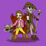 Day 9 of Gettin Arts the theme is Mirror World. And this is the Evil foon with Carnival Wilson, his life partner Wendigo Wilson and Usidore the Black Sorcerer. #Magictavern #Inktober2022 #gettinarts2022