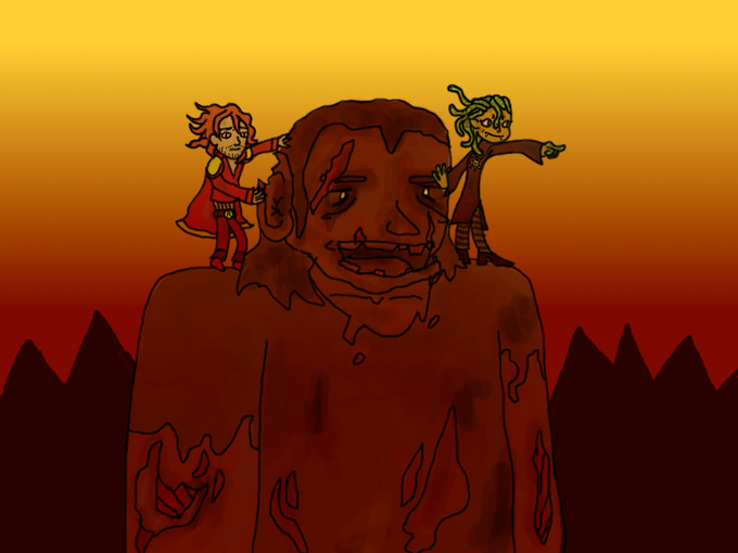 Day 10 of Gettin' Arts the theme is Masters of Mayhem. So here are The Baron and Dripfang riding their zombie giant Andre on their quest to regain the favour of the dark lord. #Magictavern #Inktober2022 #gettinarts2022
