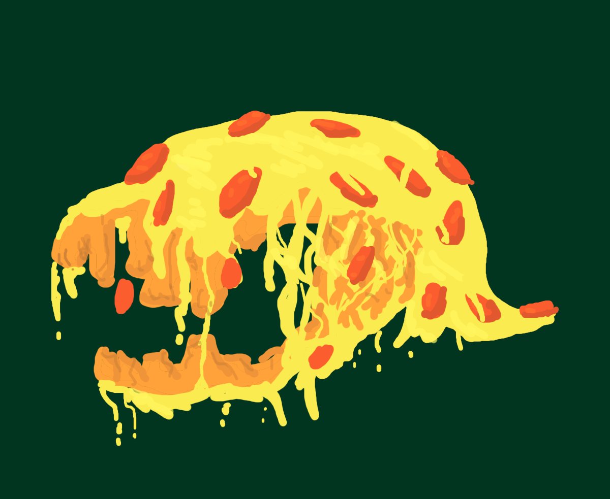 Day 15 (still catching up) of Gettin Arts is Foonish Dish. And what better food to eat than a sentient skull made of Pizza? This is Pizza Skull btw... hes a skull made of pizza. #Magictavern #Inktober2022 #gettinarts2022