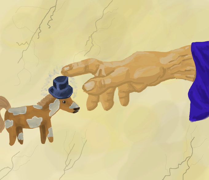 Day 18 of Gettin' Arts is Spells. And what better spell than the one that puts top hats on tiny horses? "Bing" #Magictavern #Inktober2022 #gettinarts2022