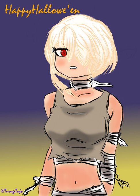#ハロウィンイラスト 間に合わなかった 今年のハロウィンイラスト、うちの子でなんちゃってミイラコスプレ