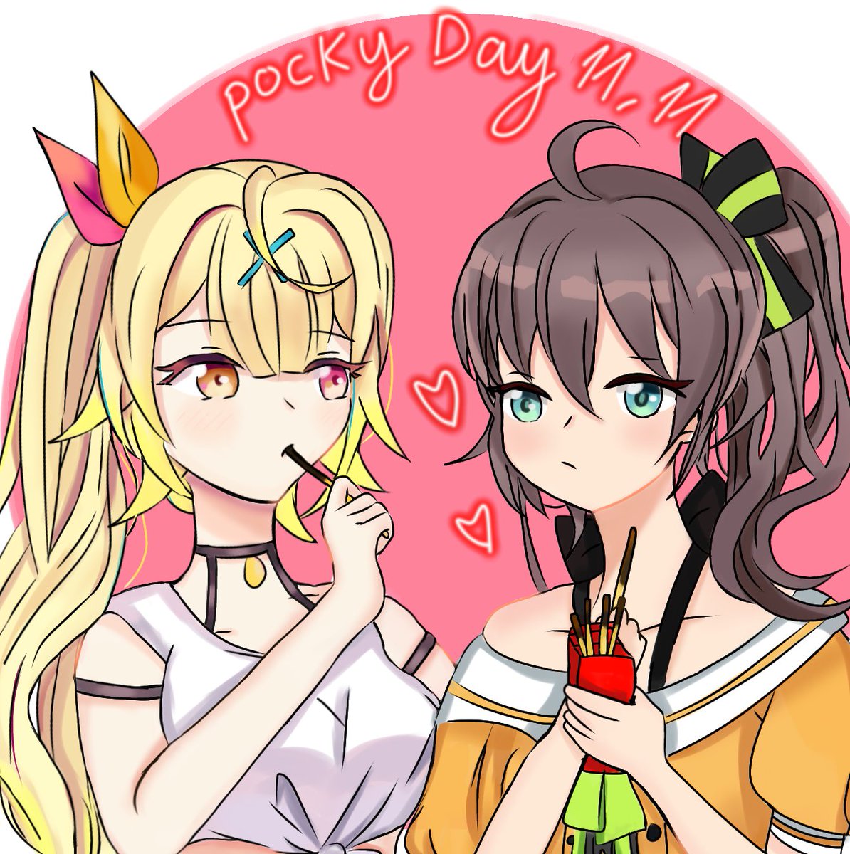 Pocky Day with Matsuri and Hoshikawa ahhhhhhh /////// [🏮🌟] wa 👍 #祭絵 #サラ星図 #星川サラ