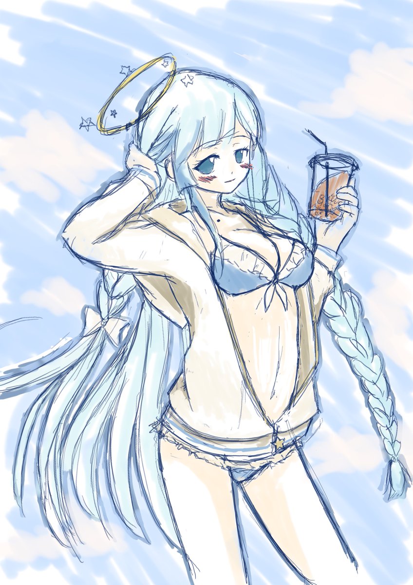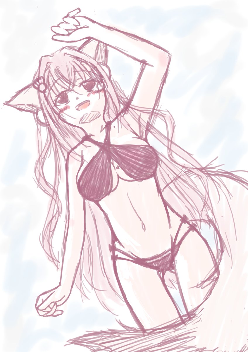 2021年8月は 水着がメインでした ①8/25 くぅちゃんの大胆な水着 ②8/28 ひそりんのぴくぷり衣装でラクガキ(練習) ③8/29 ひそりんのパーカー水着 ④8/30 くぅちゃんの白スク #今月描いた絵を晒そう