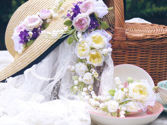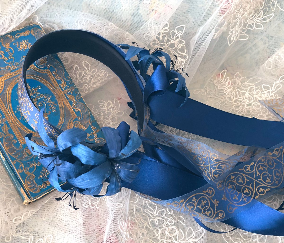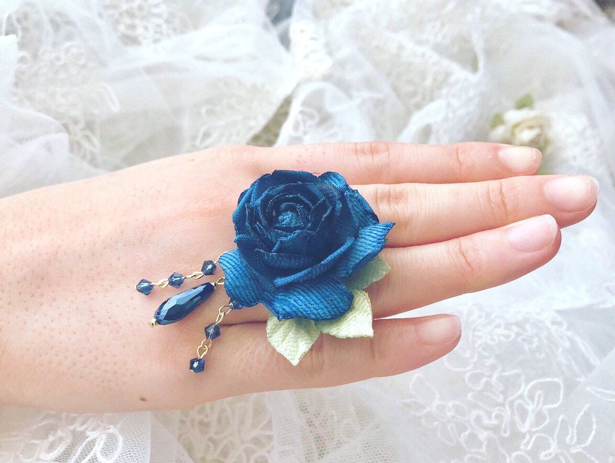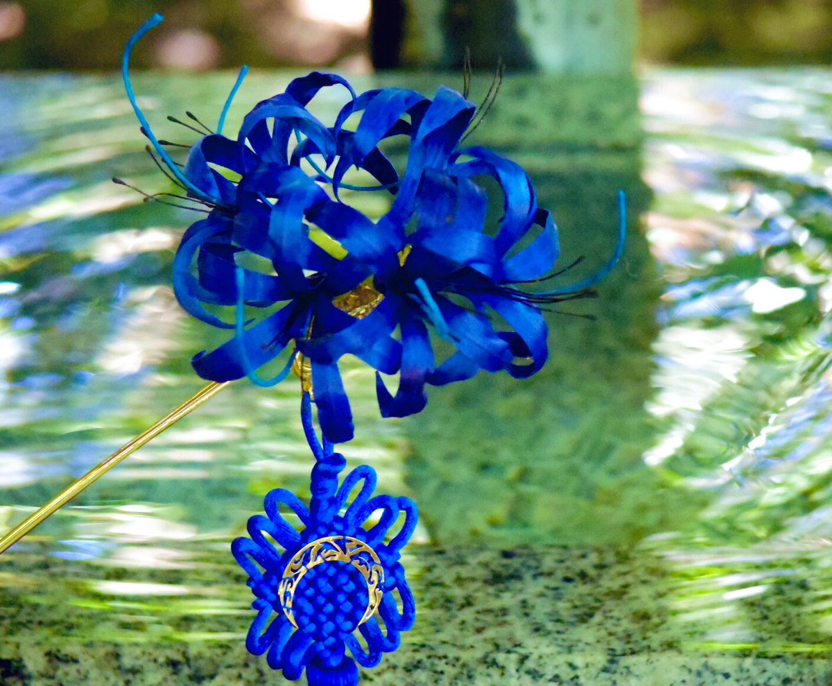 #青で繋がるみんなの輪 布花アクセサリーの青 🦋布花蝶のチョーカー 💙曼珠沙華一本かんざし 〜夜天太夫 💙蒼百合のカチューシャ 〜グリモワール-Astrologie- 💙青薔薇のリング #布花 #アンリエット