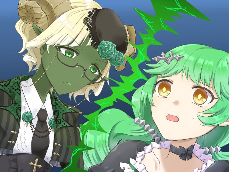 #ゴ魔乙ファンアート #ごまおつ 炎の悪魔親子。 個人的に、ジギママが1番悪魔的に恐ろしさを感じました。見た目もロリっぽいけどどこか艶っぽい… 年内に黄金編第二幕を締めると思ってましたが、完結は来年でしたね