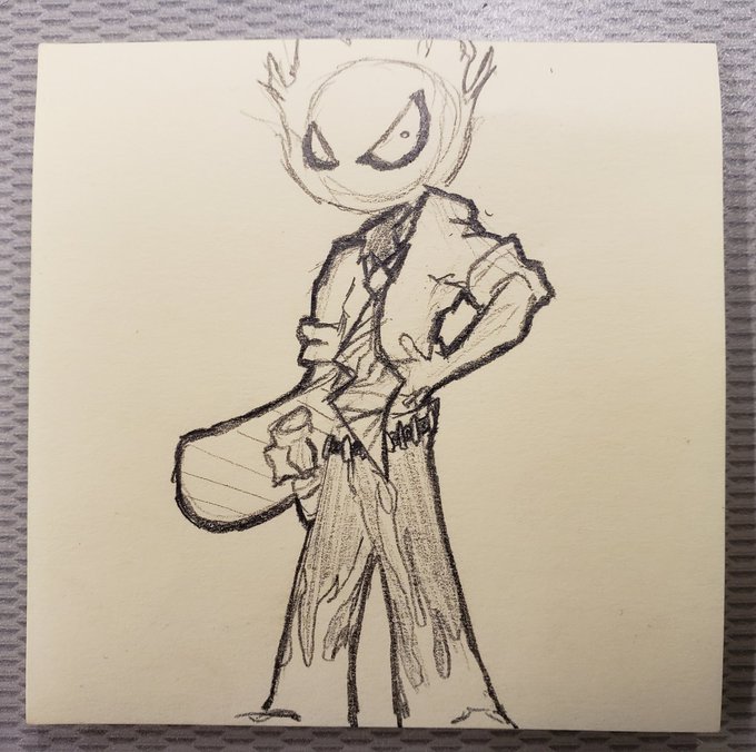 Getting more cringey with each passing day! Today's #cringetober is: 2000's Alt Fashion! So here's a little fireball person with that striped tie and eyeliner everyone was into. #cringe #inktober #cringetober2020 #anime #altfashion #alternativefashion #tie #stickynotes #drawing