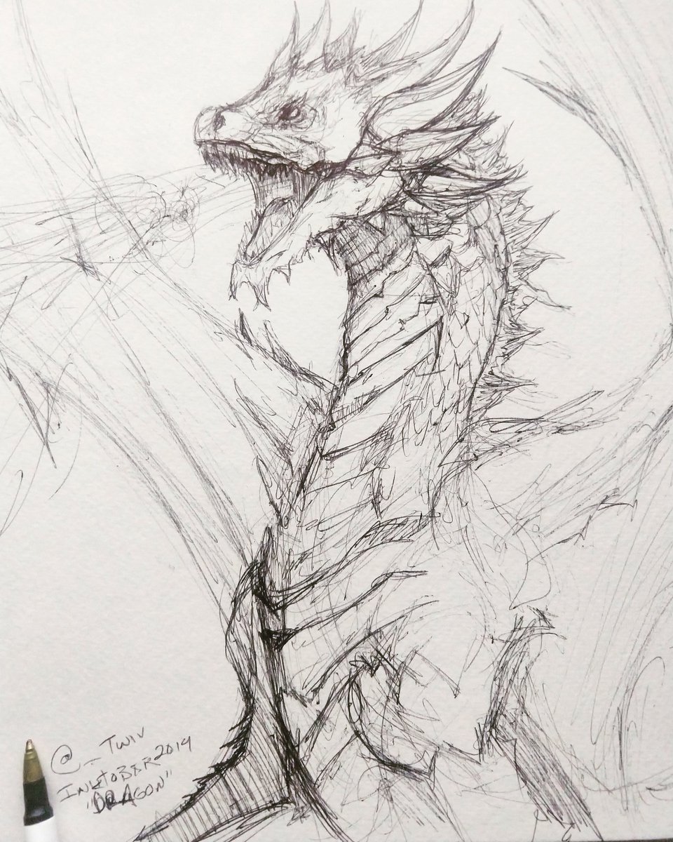 Inktober day 12 - "DRAGON" - Im behind again...ballpoint is my jam this year I guess #inktober #Inktober2019 #inktoberday12 #Dragon #dnd #fantasy