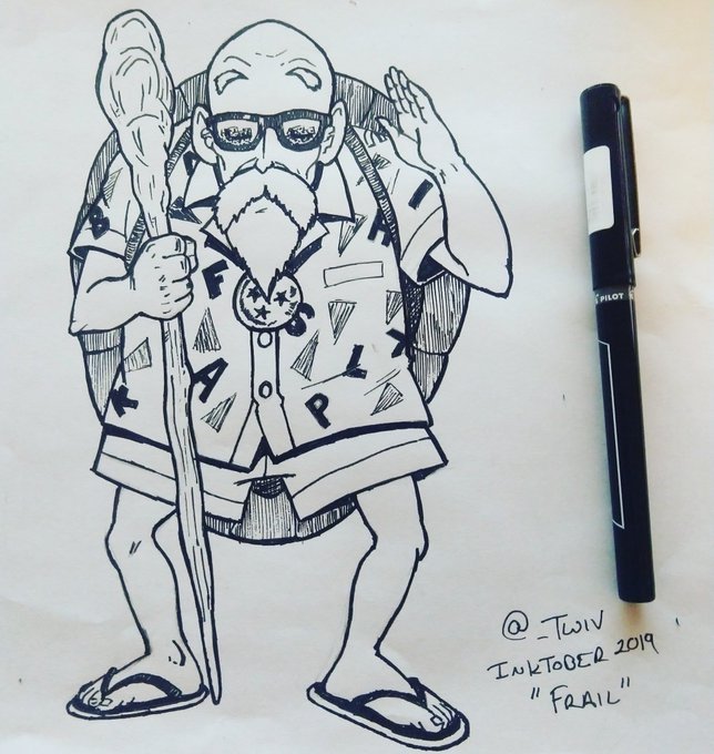 Inktober day 8 - "FRAIL" - Master Roshi is frail...until he isn't. #Inktoberday8 #inktober #Inktober2019 #frail #DragonBallSuper #DragonBall #dragonballZ #dbz
