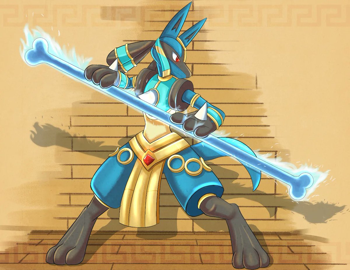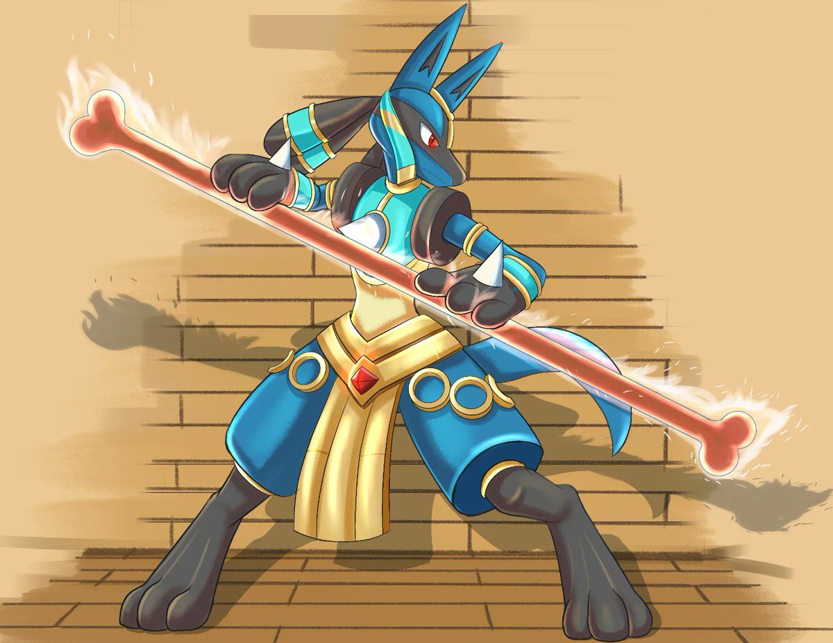 Drew lucario In his new outfit from Pokémon Unite Hope you guys like it! #Pokemon #lucario #digitalart