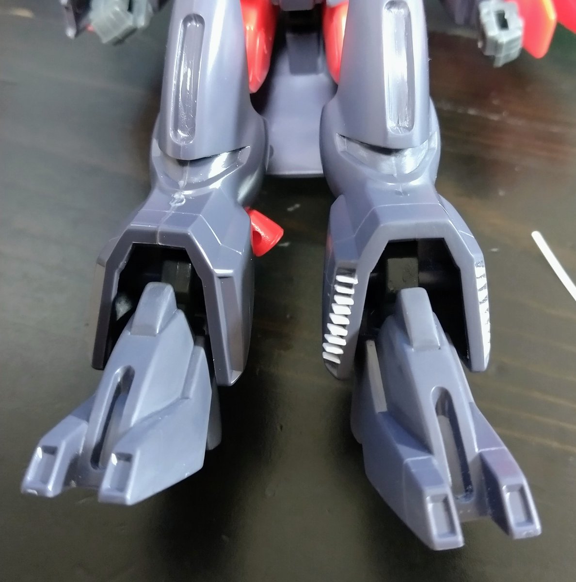 スリット入れるのに慣れてきて、右脚のスリットが左脚より多くなってきてしまった。。 面倒だから気にしないことにします。 ふくらはぎにはパテこねて詰めました。乾燥したら削ります。 #ガンプラ好きと繋がりたい #ガンプラの画像貼るとRTされると聞いて