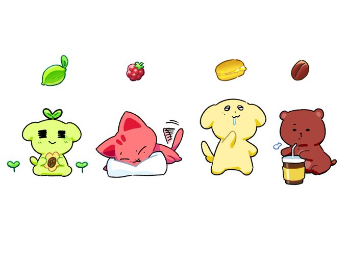 라임맛 말티쥬🍐 산딸기맛 애옹🍓 커스타드맛 골댕이🍯 커피맛 곰도리☕