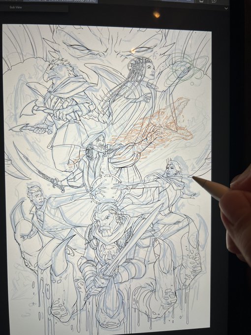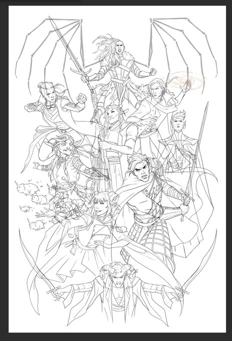 Line art is done! I’ll start coloring it this week. Would y’all like me to keep sharing progress shots as we go? #criticalroleart #MightyNein #wip #sdcc