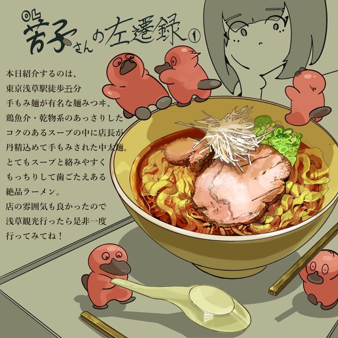 #イラスト好きな人と繋がりたい #絵描きさんと繋がりたい #OL芳子さんの左遷録 #麺みつヰ 印象に残った食べ物をミニキャラと共にシリーズ化します‼︎