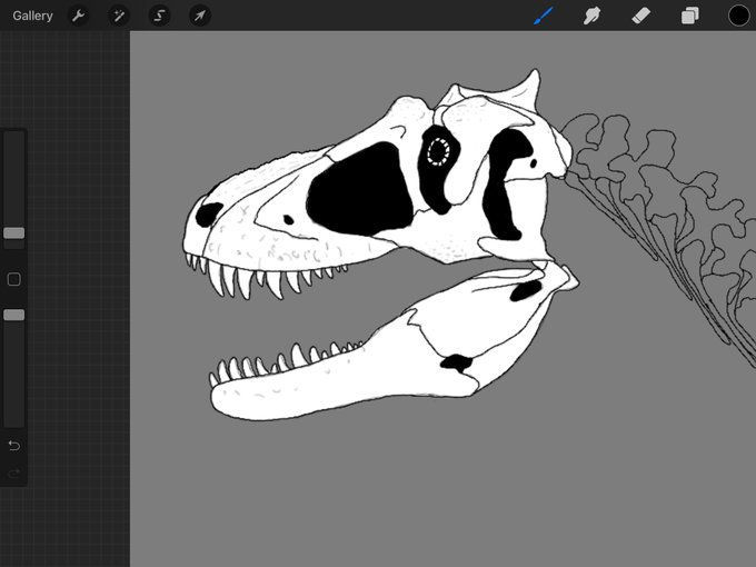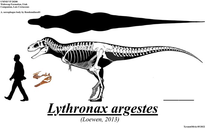 Edited @Randomdinos01 A. fragilis skeletal with my skull reconstruction of Ebenezer. This is actually scaled after the fossil being kept in the Creation Museum, thanks to some great images taken by @ironicallyunfun. I've yet to take any measurements #paleoart #sciart twitter.com/TyrannOlivia…