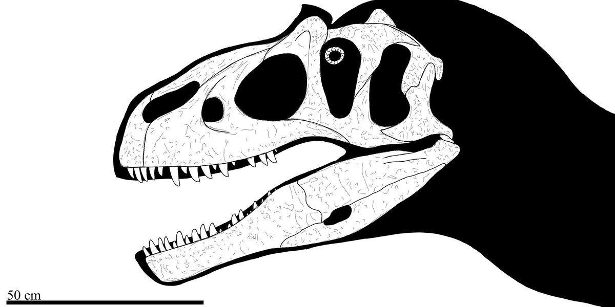 Skull reconstruction of the tragic creation museum Allosaurus, Ebenezer. Due to no official measurements of it existing however, this is scaled after A. fragilis neotype, USNM 4734 #paleoart #Allosaurus