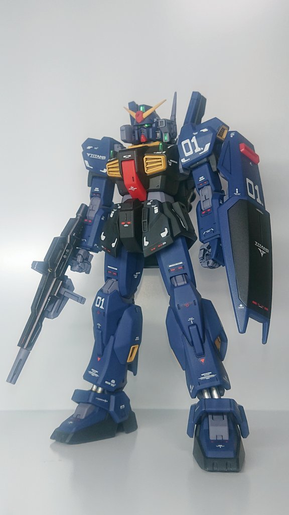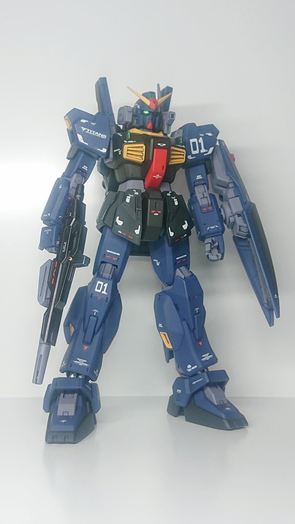 HGガンダムMk-Ⅱティターンズカラー完成しました😊 今回はパーツの表面処理にチャレンジ 個人的に上手くいったかと思います😄 機体が黒いので白背景で撮影してみました😊 #ガンプラ #ガンプラ好きと繋がりたい #ガンプラの画像を貼るとRTされると聞いて