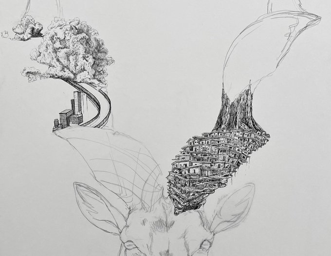 完成しました 楽しかったです サイズ:B3 主な使用ペン: ZEBRA Rubber80 PIGMA 0.03 #趣味没頭週末 #ペン画 #artwork #drawing #想像画 #マーコール #ボールペン画 #ペン好き