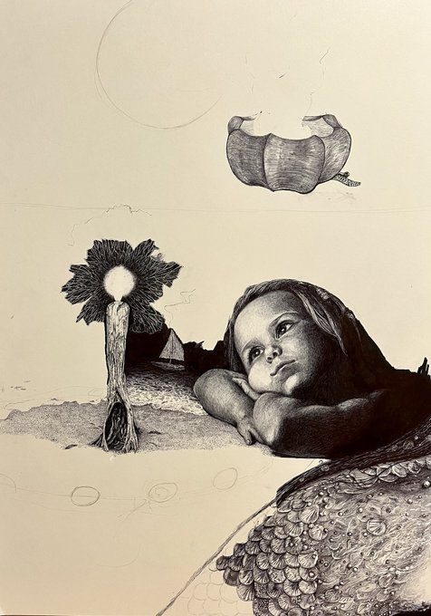 24 222 完成しました 楽しかったです サイズ:B3 主な使用ペン: ZEBRA Rubber80 PIGMA 0.03 #趣味没頭週末 #ペン画 #artwork #drawing #想像画 #マーコール #ボールペン画 #ペン好き 22/08/14 19:44