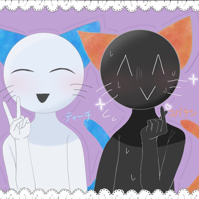 ティーチくんとコバたん!少しプリクラ風にしてみたけど下手すぎる、今日いっぱいティーチくんかくw #ねこのティーチくん #ティーチくん #コバたん #イラスト