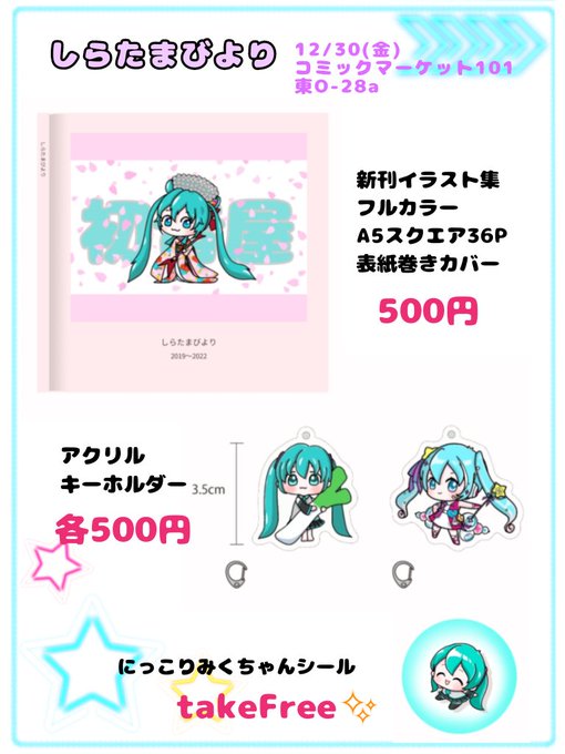 あなたのサークル「しらたまびより」は、コミックマーケット101で「金曜日東地区 "O " 28a」に配置されました! webcatalog.circle.ms/Circle/Map/168… #C101WebCatalog 詳細は随時お知らせします💛 がんばりまうす!🐹✨️ 12/30(金)💛