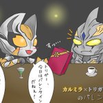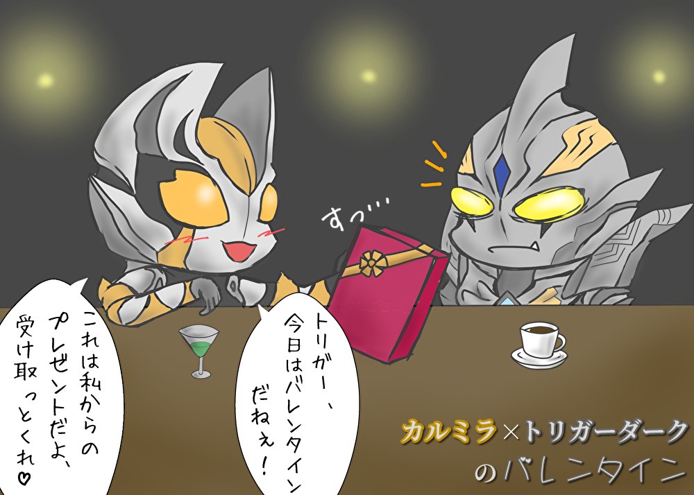 2022年も終盤なので今年描いたイラストを振り返る その① 「トリガーダーク君とカルミラさんのバレンタインナイト🍫」 バレンタインの時期に描いたやつ。この2人の組み合わせいいよね。 #ウルトラマントリガー