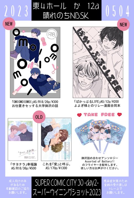 【スーパーウイニングショット2023新刊サンプル②】 「 ばかっぷるLIFE」 全年齢/A5/12p よよぎさん( @ma_ma_boon )との合同本です! リレー形式の8コマ漫画となっております。 サンプル→pixiv.net/artworks/10757…