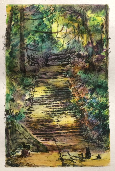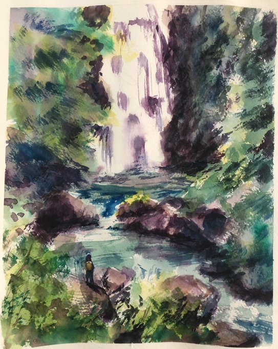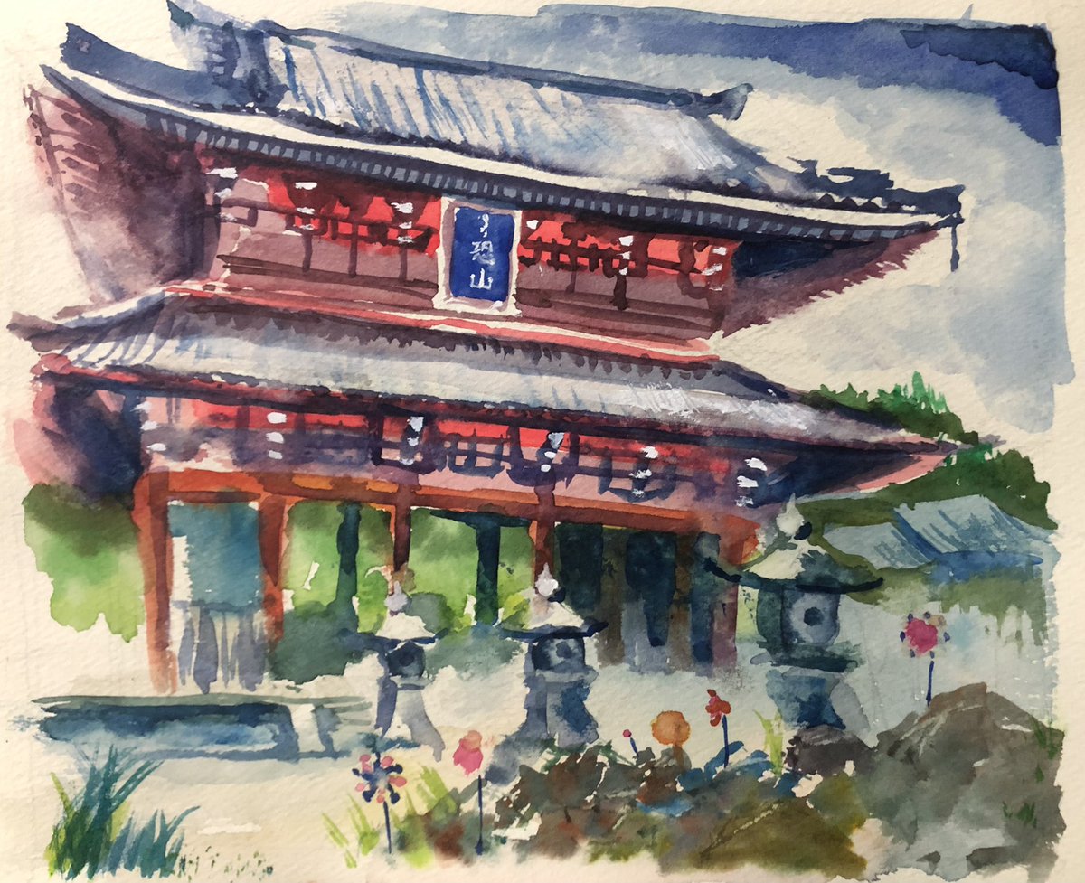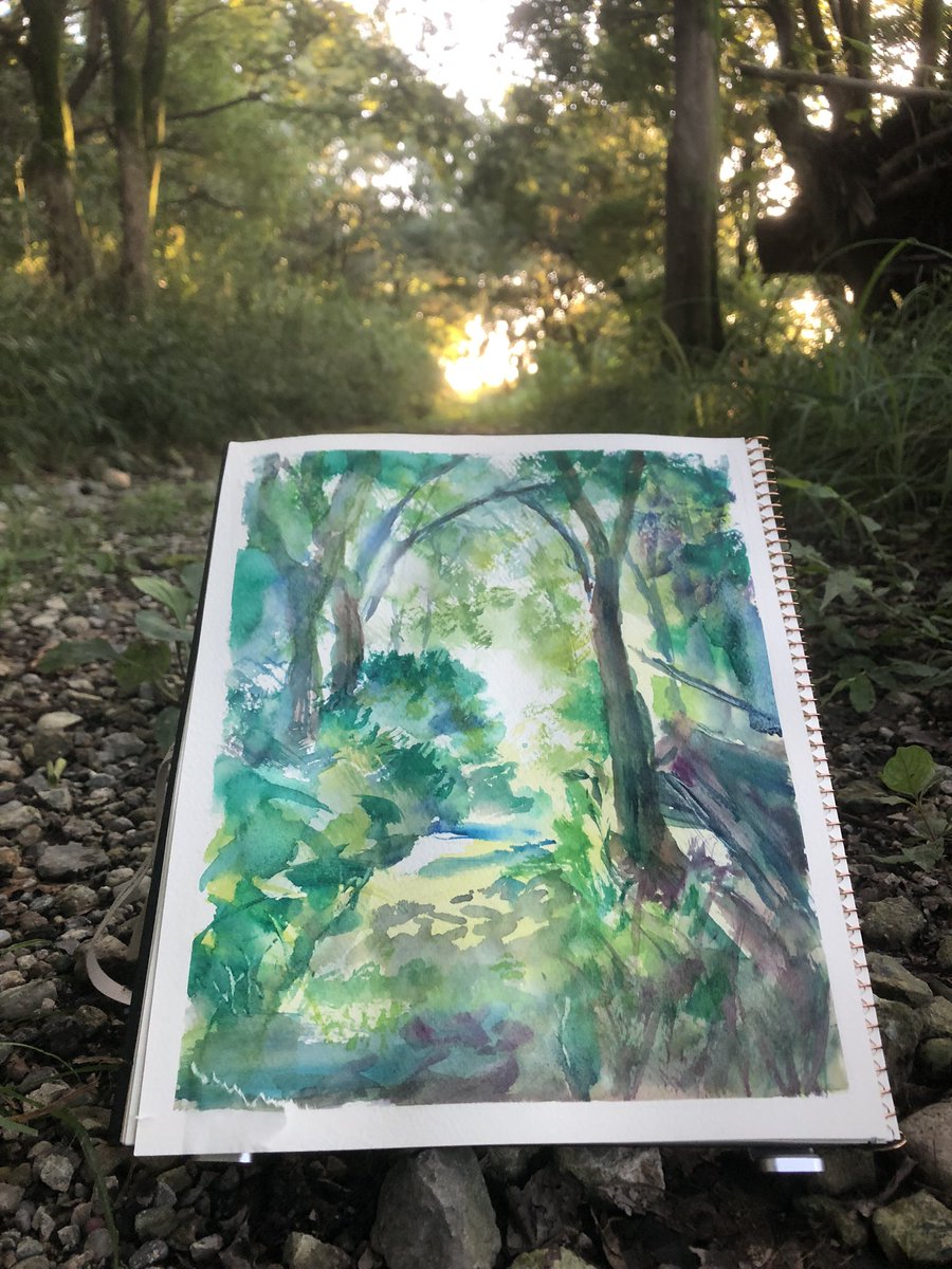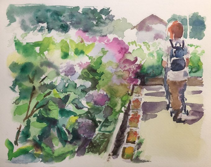 97日目。今日は初の野外スケッチ行ってきた。 ・理想→鳥のさえずりと蝉の声を聴きながら優雅にお絵描き ・現実→虫が多すぎて何も考えられない、パレットにクモが落ちてくる、キャンパスにも虫…orz #100日チャレンジ