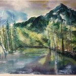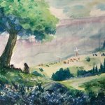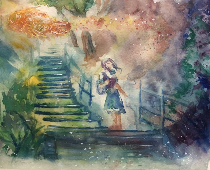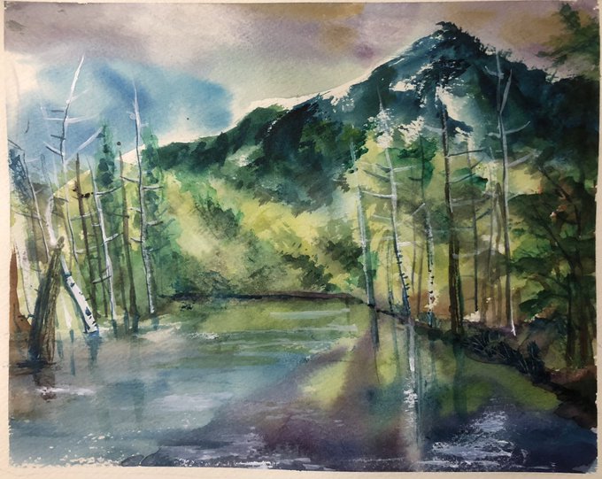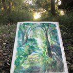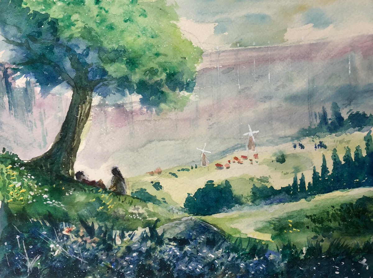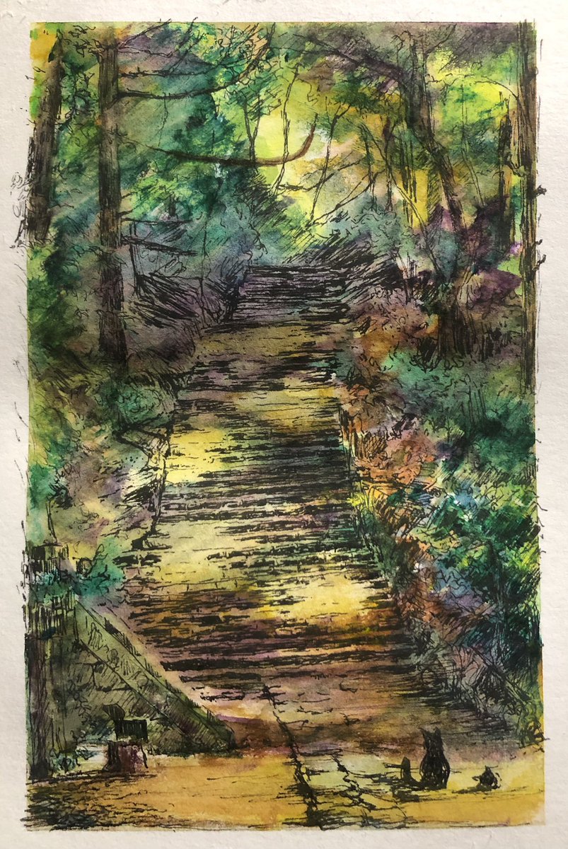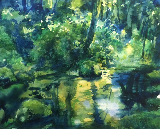 97日目。今日は初の野外スケッチ行ってきた。 ・理想→鳥のさえずりと蝉の声を聴きながら優雅にお絵描き ・現実→虫が多すぎて何も考えられない、パレットにクモが落ちてくる、キャンパスにも虫…orz #100日チャレンジ