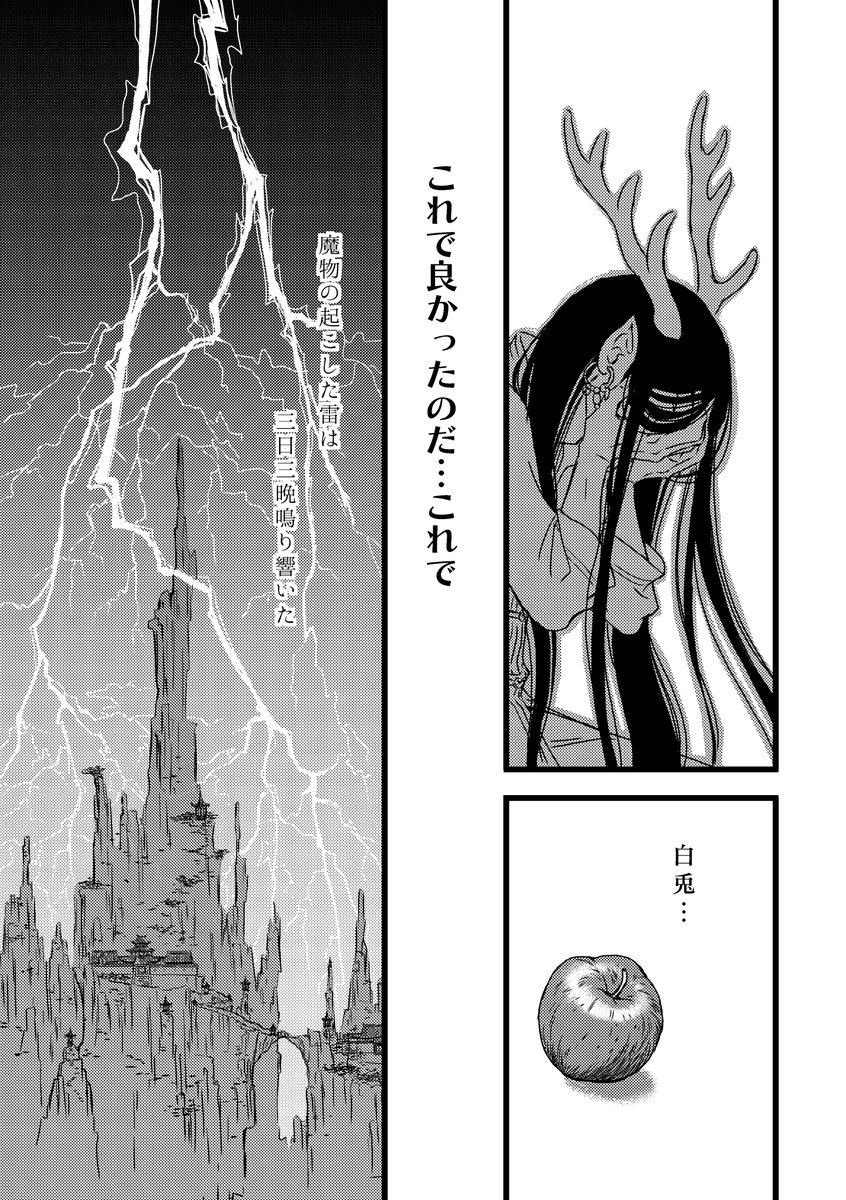 人喰いの魔物と飼育された少年の物語。 寂しさを紛らわすため大好きな主様の服を身にまとう白兎、まだ結ばれる前のほのぼのとした短編です。「魔物の接吻」収録。1/3 シーモア cmoa.jp/title/264121/ Amazon amazon.co.jp/%E9%AD%94%E7%8…… 明日まで #創作BL大豊作まつり #漫画が読めるハッシュタグ