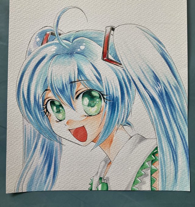 期日まで時間がなくてガガガって描いた( ; ; ) 色々とデッサンも着色配色共にいかんのは分かってるから悔いの残る一枚に…。゚(゚´ω`゚)゚。 初音ミクちゃん可愛いのに… 可愛いのに… ごめんよ(;ω;) #初音ミク #アナログイラスト #絵師さんと繋がりたい #絵柄が好みの人にフォローされたい