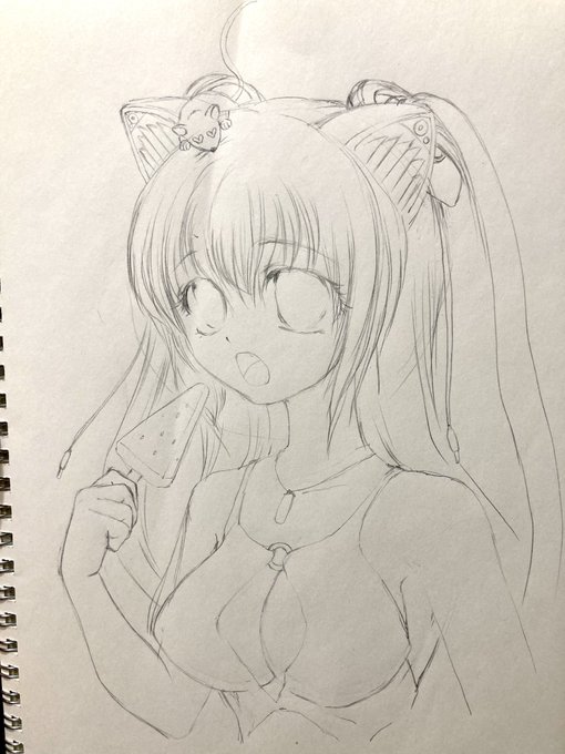 のら様の水着👙💕 めちゃくちゃ可愛いのでラフ画でも良いから描いてみた! スイカバー持って頂きました😅 ああ〜でも私じゃ可愛さが伝わらない😭 この擬かしさが辛い😭 #Nora_Cat #イラスト #アナログイラスト #絵師さんと繋がりたい #絵描きさんと繫がりたい #絵柄が好みの人にフォローされたい