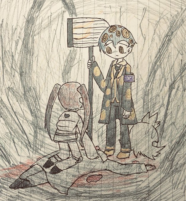 #ロボトミー版深夜の真剣お絵描き60分一本勝負 抜け殻と職員ミホ...と友達