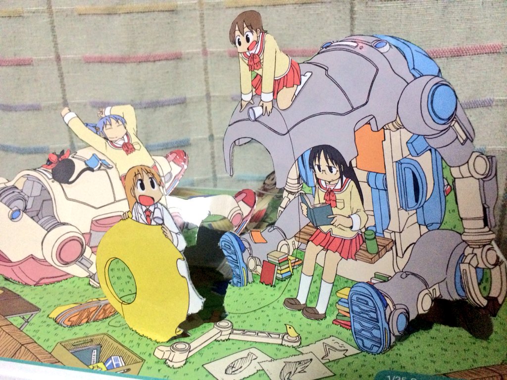 奥行きを与えてみたPart2。はかせとゆっこの高低差とか、なのが後ろでランチの用意をしてたりとか、ちゃんみおの伸びとか。キャラのおかげか、前にやったみずいろ&ももいろより動きがあって面白い仕上がり^_^ #メカトロウィーゴ #日常