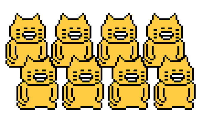 4 14 暇を持てあまし、娘が好きなノラネコ軍団のドット絵作成。 わんわんちゃんに怒られてるところ。 #pixelart #ドット絵 22/10/16 08:56