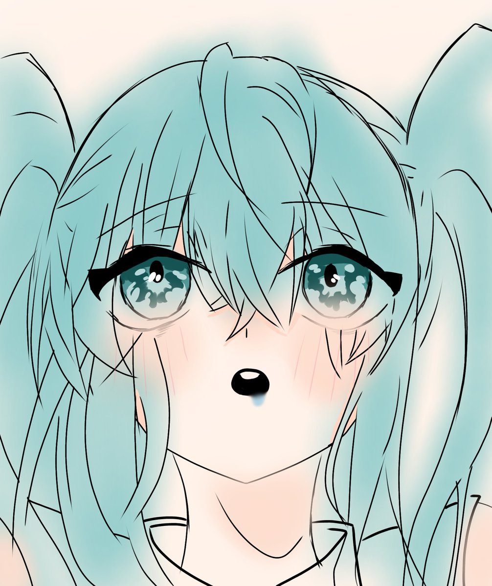 グホヘアめ、目でっか( '-' )ノ)`-' )ボコッ #初音ミク #ミク #VOCALOID #イラスト