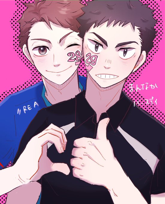 🎈🎂happy真ん中バースデー🎂🎈 素敵タグ、お題ありがとうございます(^-^) お題 「28→29」 阿吽ちゃん大好きだー #及岩真ん中バースデー2023 #oiiw28_29HPMB